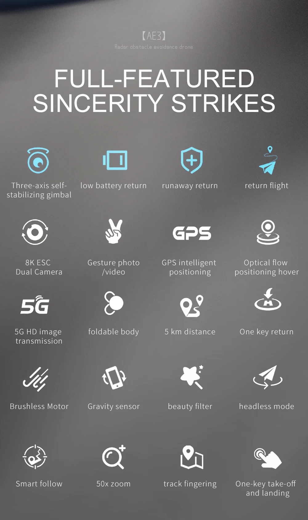 ①Our drones are very comprehensive, including all the functions on the market. We have everything you want!