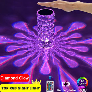 LED Crystal Table Lamp Waterdrop Projector 3/16 Colors Touch Adjustable Romantic Diamond Atmosphere Light USB Touch Night Light