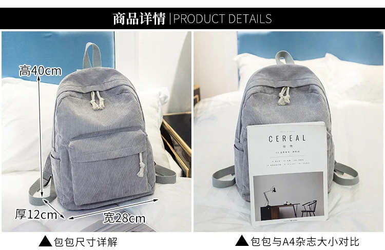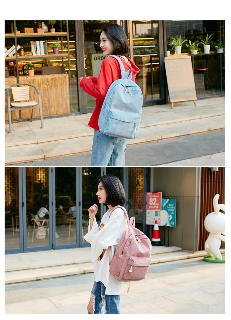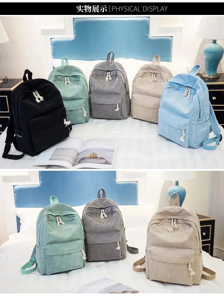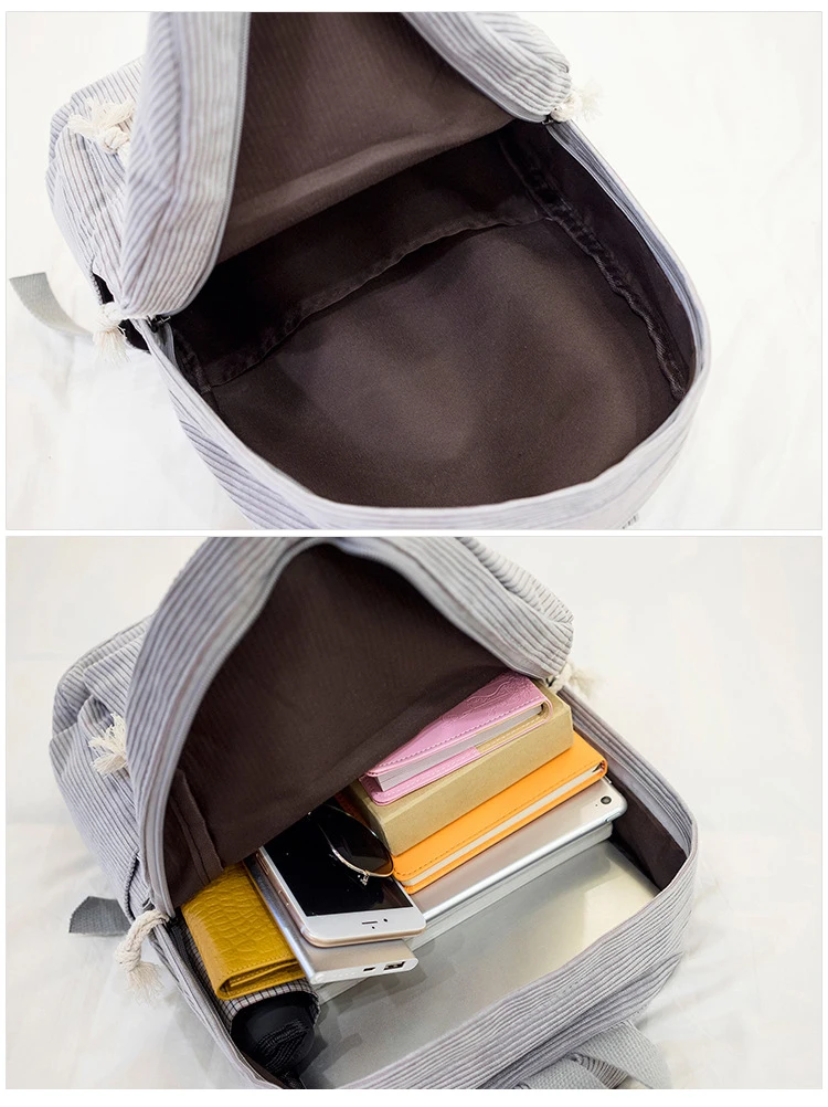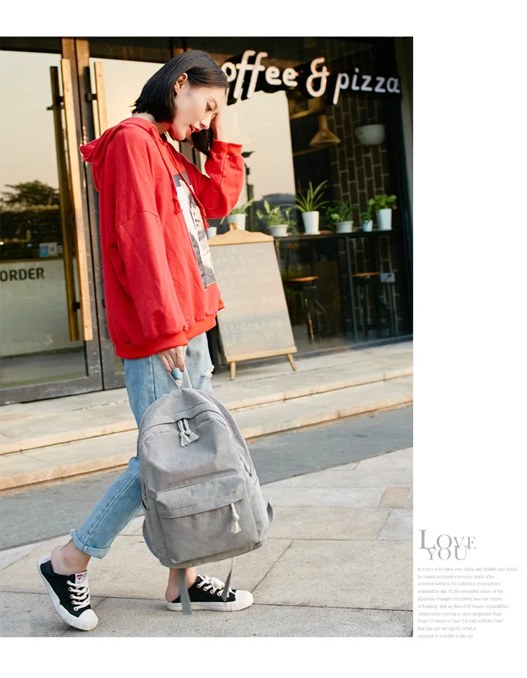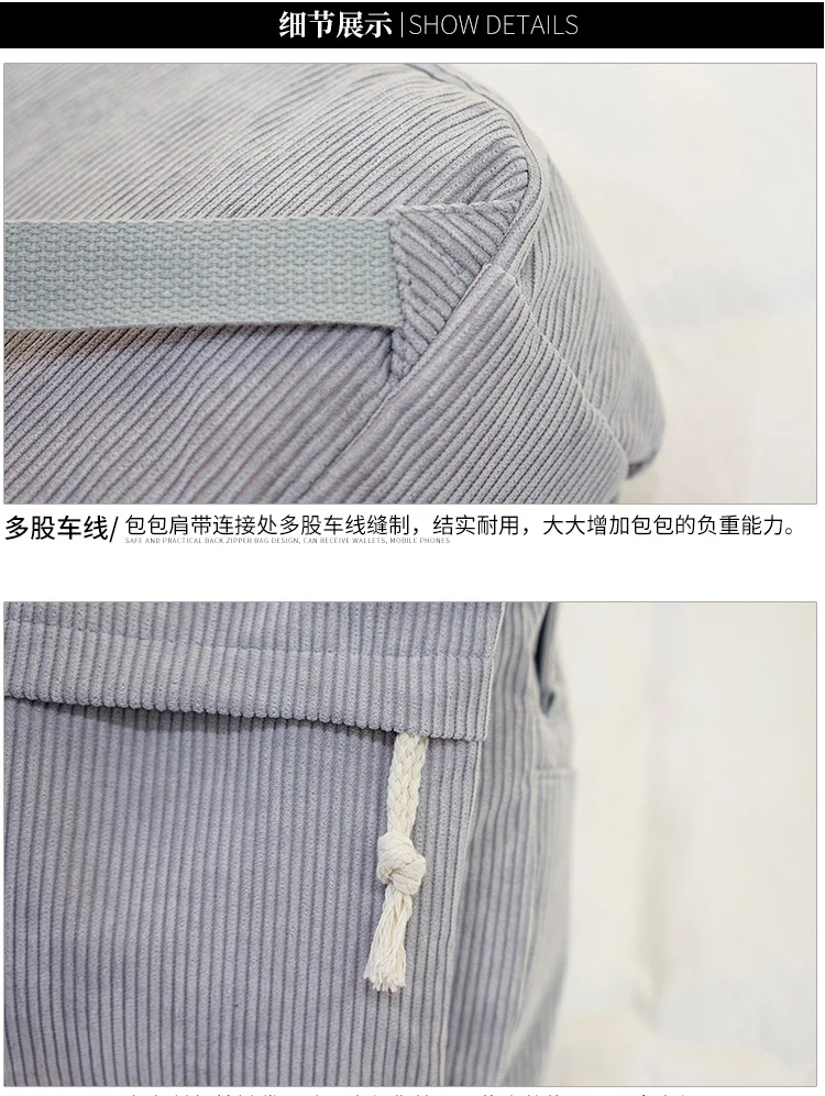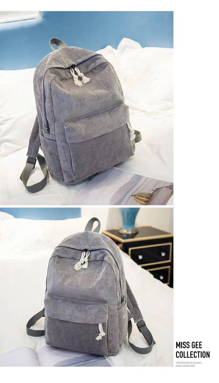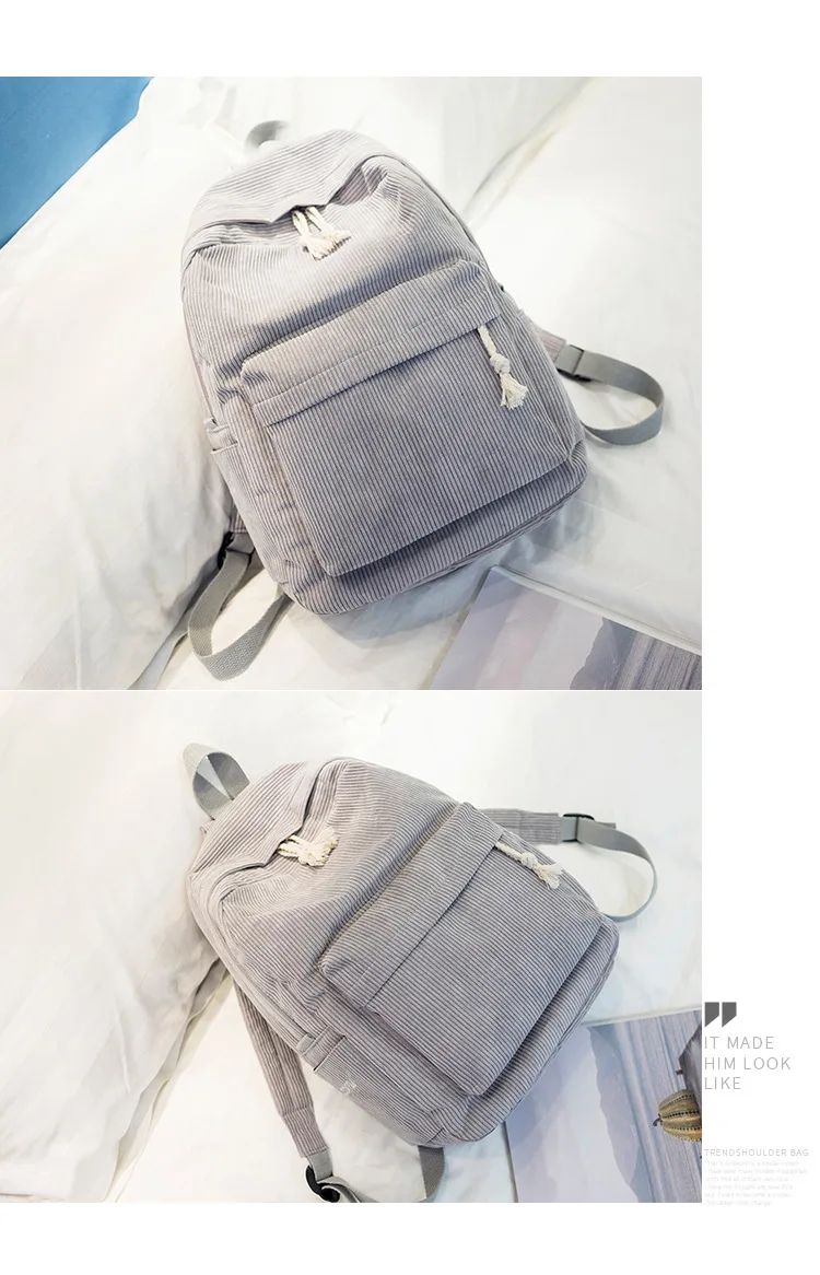 Women Backpack Corduroy Design School Backpacks For Teenage Girls School Bag Striped Rucksack Travel Bags Soulder Bag